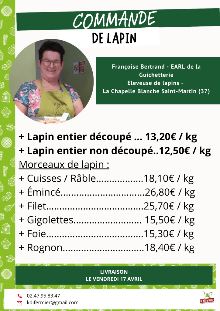 Préparés par Françoise Bertrand, de l’EARL de la Guichetterie, ces lapins sont proposés uniquement sur commande :