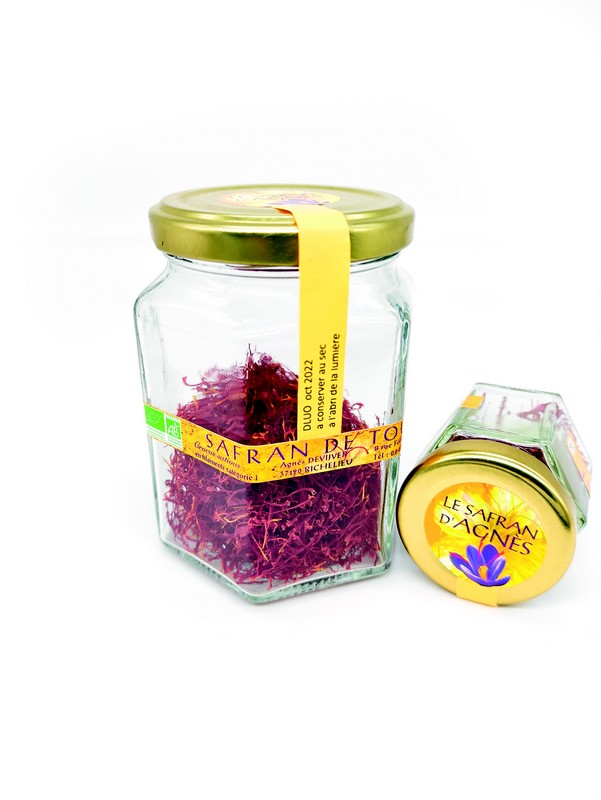 En cadeau ou pour vous en cuisine, succombez à cette épice cultivée par Agnès Devijver à Richelieu (safran d’Agnès BIO) et par Valérie Raineau-Boucher à la Tour-Saint-Gelin (Safran de Val).