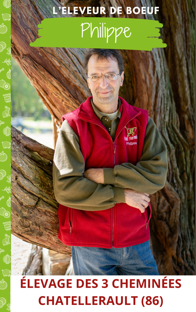 * En tant qu’associés du K’di Fermier : Philippe&Nathalie Memeteau de l’élevage des 3 Cheminées (boeuf et veau HVE) Martin Souriau&Jordan Gaillard de la Ferme de la Croix Blanche (volailles et petits fruits rouges BIO). En tant que producteur apporteur : Béatrice Martin de la Ferme Dana (veau BIO)