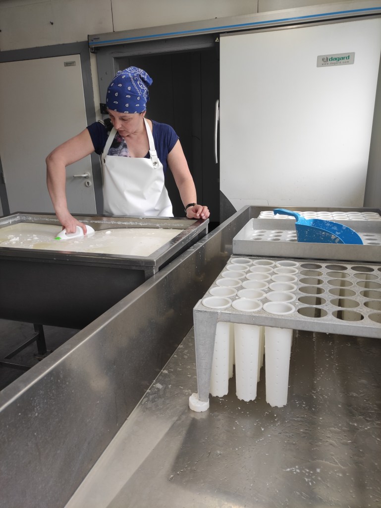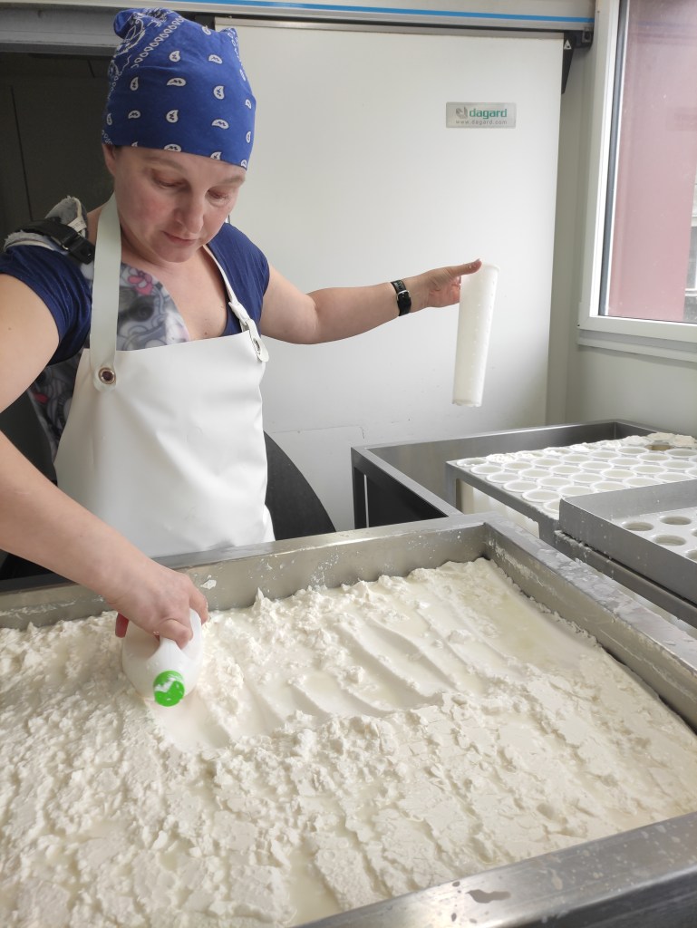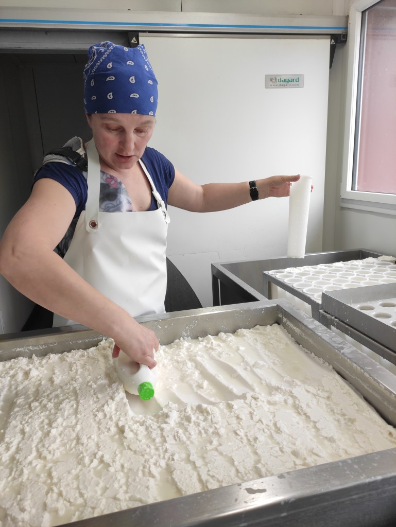 Ce lait a maturé quelques heures avant de passer en fromagerie. Iryna utilise des astuces traditionnelles donnant à ses fromages un goût unique telle que l’ajout de sérum dans le lait.