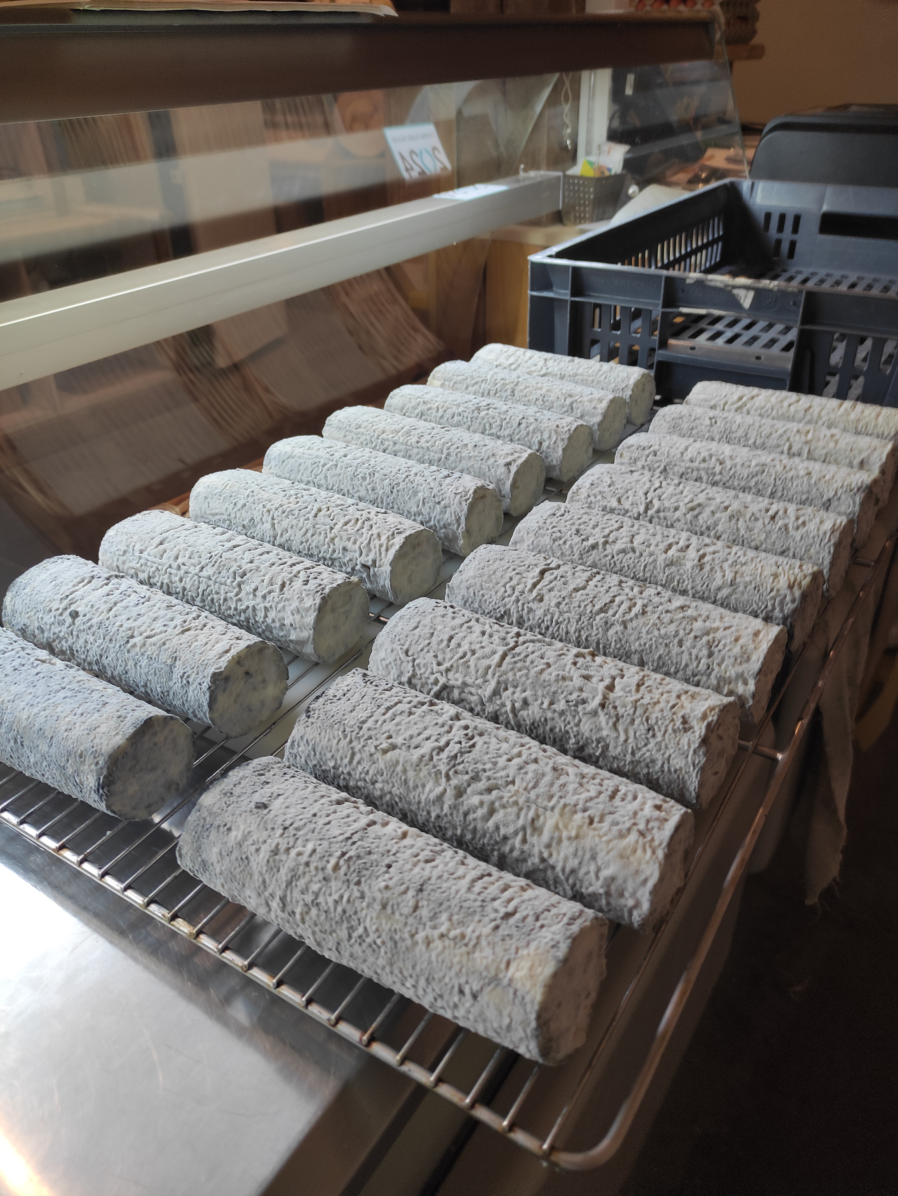Bien qu’Iryna propose des fromages frais nature, ses autres fromages frais ou affinés ont une couleur cendrée. Il s’agit d’un mélange de cendre de châtaignier et de sel, exhausteur de goût et conservateur.