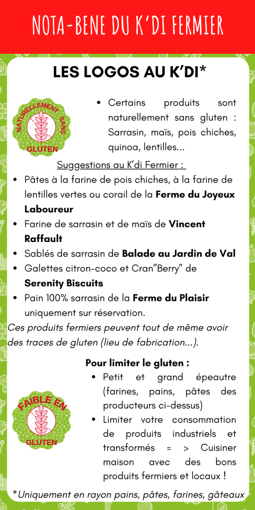 Vous cherchez des produits avec peu ou pas de gluten ? Suivez le guide ! Vous retrouverez les logos « Naturellement sans gluten » et « Faible en gluten » près des produits concernés.