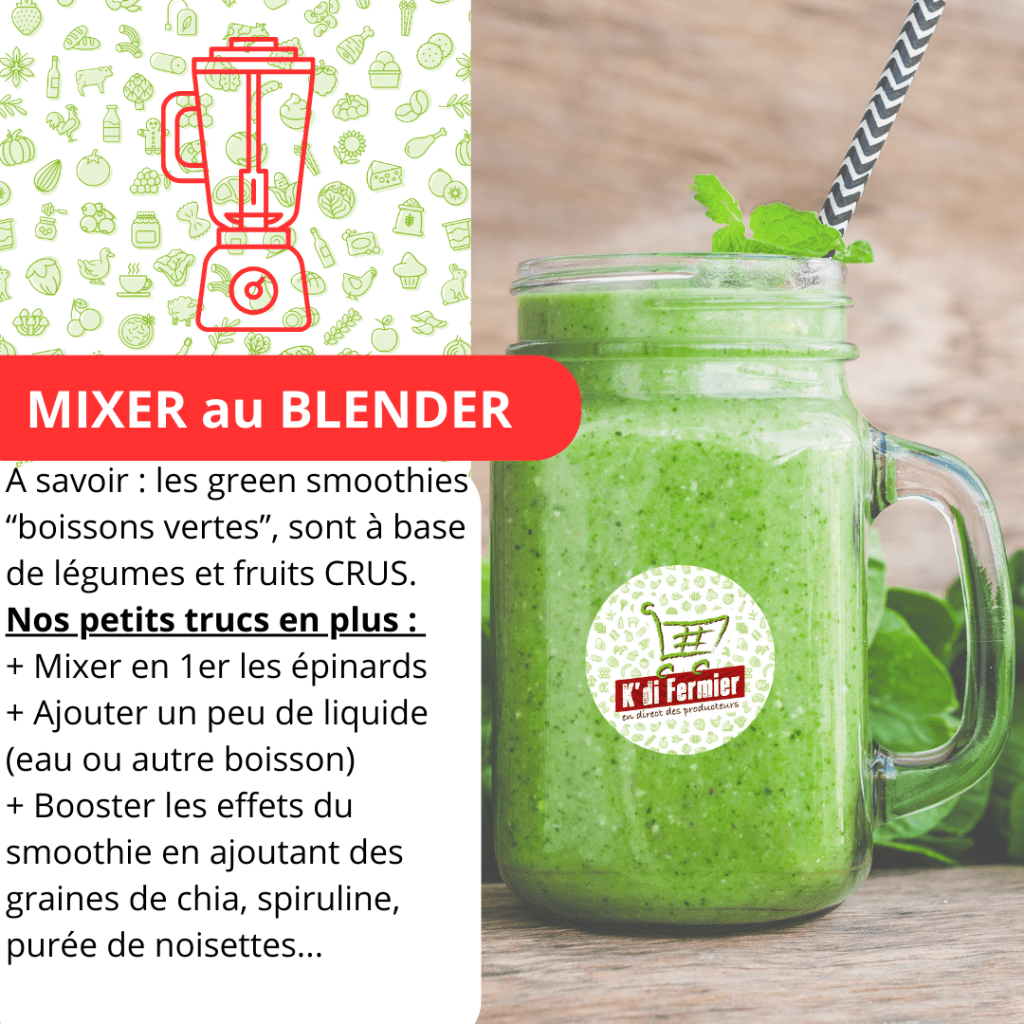 Le green smoothie, « boisson verte », est à base de légumes verts et de fruits crus. Savoureuse, cette boisson est aussi un concentré de vitamines, minéraux et autres bonnes choses pour vous booster entre hiver et printemps !