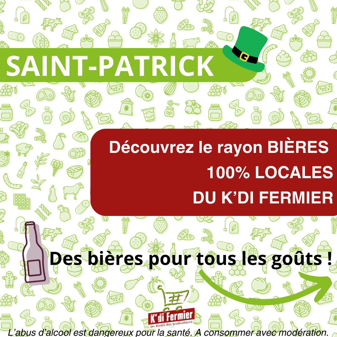 Pour une soirée Saint-Patrick 100% locale, découvrez notre gamme de bières brassées par 3 producteurs différents à environ 10kms du magasin.