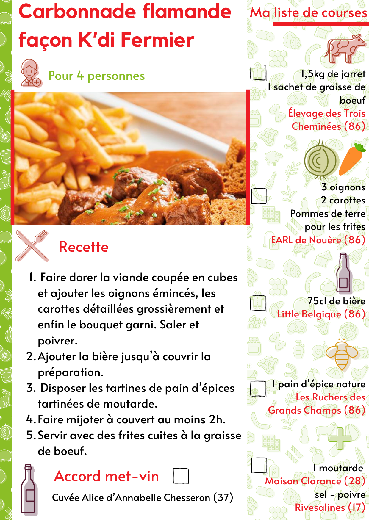 L’occasion de déguster un dernier plat hivernal : la carbonnade flamande façon K’di Fermier.